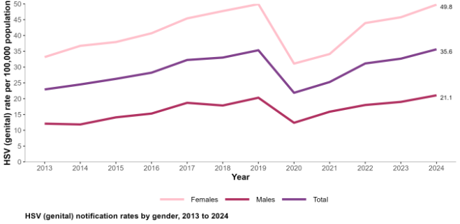 Genital herpes is common in Ireland. It is mostly diagnosed in young women.